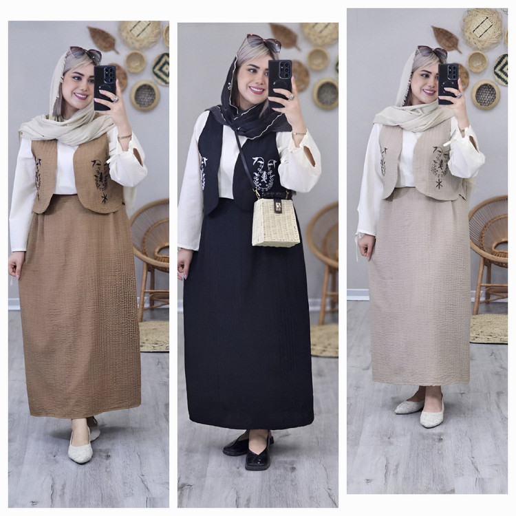 ست سه تیکه نگین (شومیز-جلیقه-دامن) - ارسال رایگان - حسنا مزون